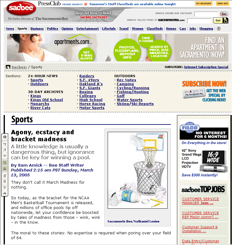 OK, back to the basics. Jonathan Harris, a UC Davis graduate who runs the Web site Pooltracker.com from his Placerville home, says taking part in more than one pool can multiply the odds and the fun. "I try to hedge my bets," said Harris, a computer programmer who estimates that 50,000 March Madness pools will be run through his site this month. "I have different teams in different pools. But that makes it hard to root because I'm so torn."